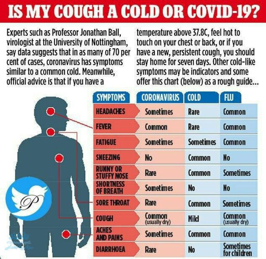* سردرد اغلب مربوط به آنفلوانزا است اما گه گاه بودن آن مربوط به کرونا است.
