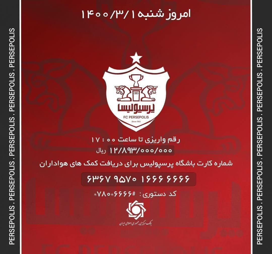 این رقم در حالی اعلام شده که هفته گذشته باشگاه پرسپولیس با انتشار بیانیه‌ای شماره کارتی را اعلام و از هواداران این باشگاه خواست تا برای حل مشکلات، کمک مالی کنند.