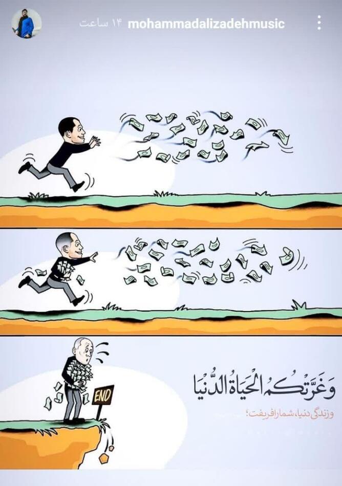 محمد علیزاده، خواننده موسیقی سبک پاپ، تصویرنوشتهای قابل تامل را در استوری صفحه شخصی خود منتشر کرد.
