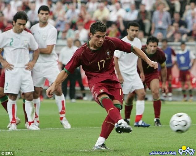 کریستیانو رونالدو در جام جهانی ۲۰۰۶ از روی نقطه پنالتی دروازه ایران را باز کرد تا پیروزی پرتغال قطعی شود