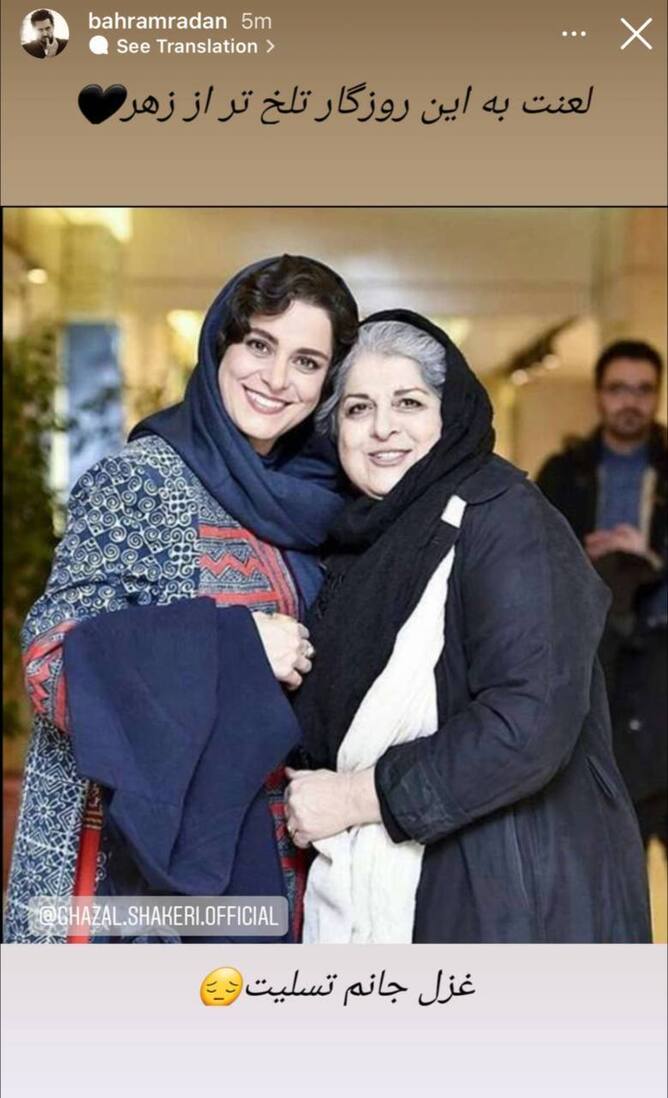 بهرام رادان در پی درگذشت فرشته طائرپور، تصویر زیر را در صفحه رسمی خود منتشر کرد.