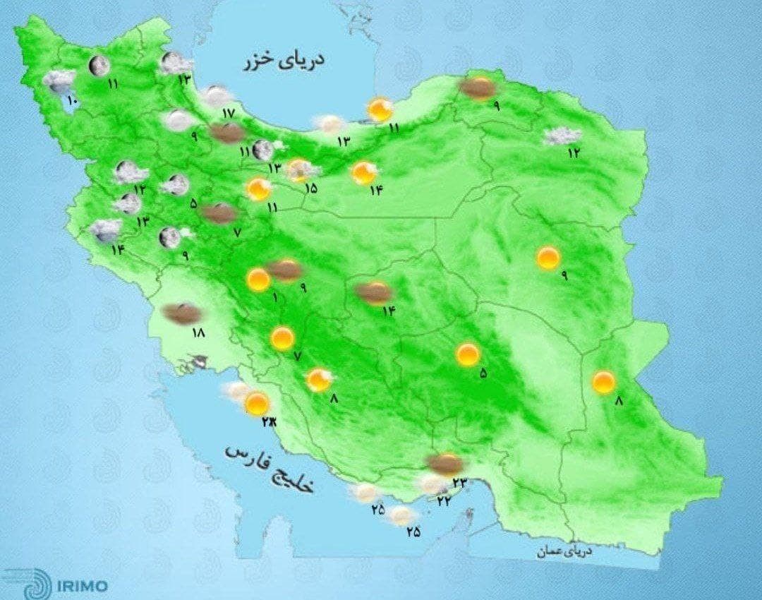 ضیائیان درباره آب‌وهوای استان تهران هم گفت: آسمان تهران قسمتی ابری همراه با غبار محلی است و در بعدازظهر به‌تدریج گاهی همراه با وزش باد شدید و احتمال گردوخاک خواهد بود. بیشترین دمای تهران به ۲۳ درجه و کمترین آن به ۱۳ درجه می رسد.