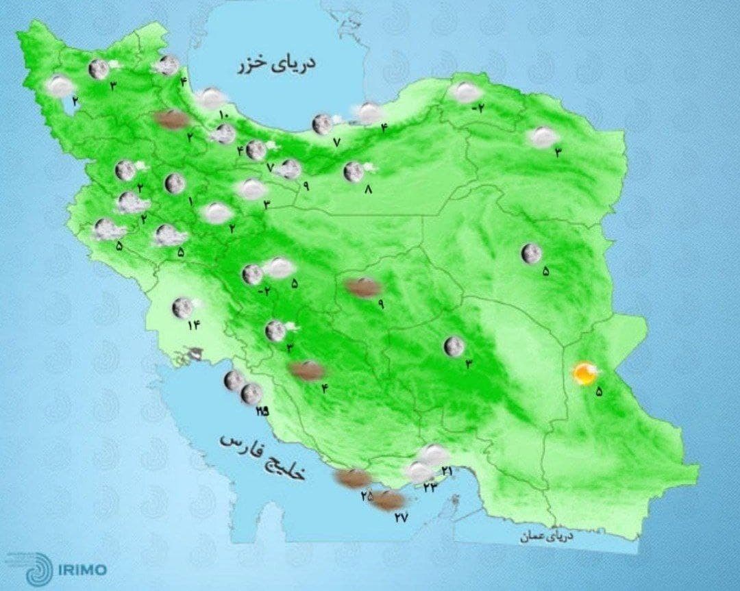 وضعیت آب و هوا، امروز ۷ آذر ۱۴۰۰ / بارش پراکنده باران در جزایر تنگه هرمز