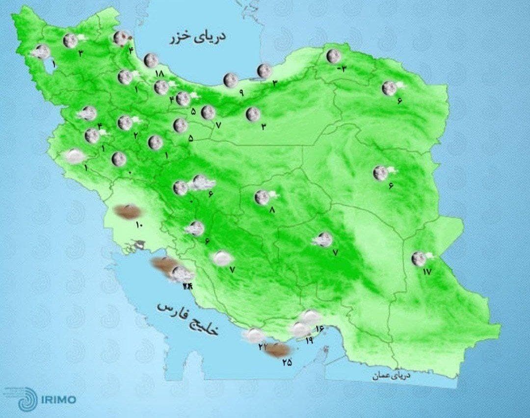 وضعیت آب و هوا، امروز ۱ دی ۱۴۰۰ / کاهش محسوس دما در نیمه شمالی کشور