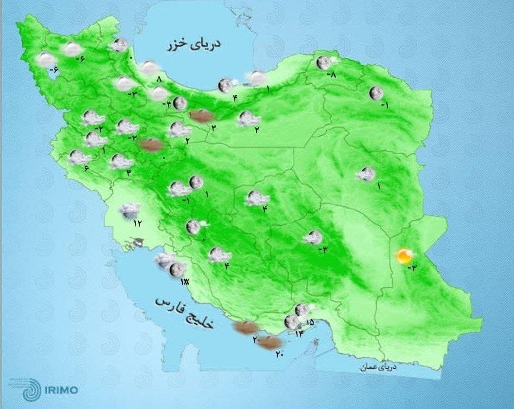 وضعیت آب و هوا، امروز ۸ دی ۱۴۰۰ / ورود سامانه بارشی از جنوب غرب به کشور