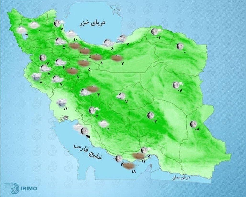 وضعیت آب و هوا، امروز ۲۱ دی ۱۴۰۰ / بارش باران در۱۶استان طی امروز / کاهش دما تا ۱۰ درجه