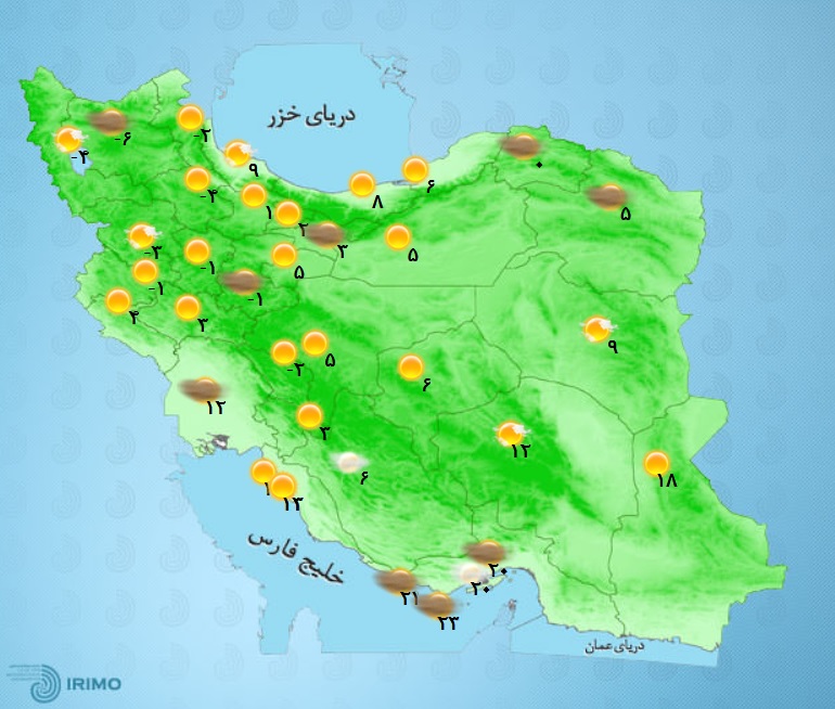 مرتضی ضرابی افزود: امروز آسمان اکثر نقاط کشور صاف و آفتابی است و این شرایط تا فردا نیز ادامه خواهد داشت.