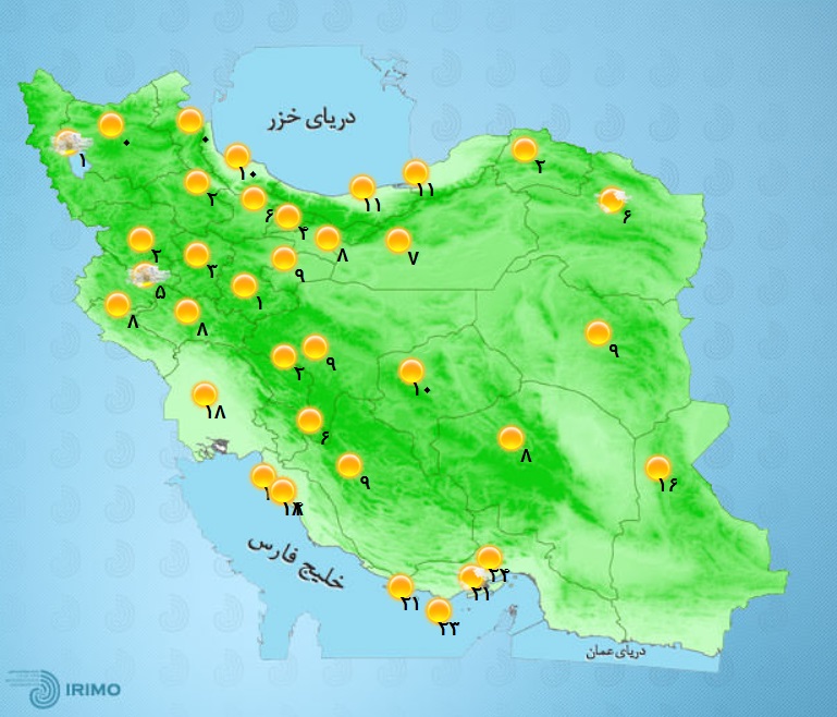 وضعیت آب و هوا، امروز ۱۹ بهمن ۱۴۰۰ / افزایش نسبی دما در اکثر مناطق کشور