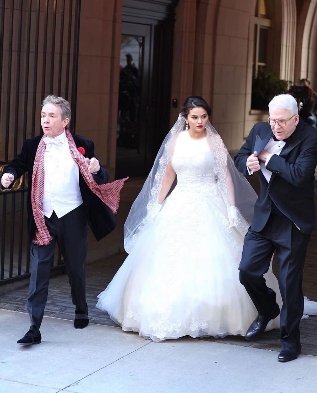 روزنو :تصاویر جدید از سلنا گومز، بازیگر و خواننده پرطرفدار ۳۰ ساله با لباس عروس در پشت صحنه فیلمبرداری فصل سوم سریال Only Murders in the Building در نیویورک که از شب گذشته بسیار پربازدید شده است.