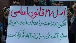 اصل ۲۷ قانون اساسی اجتماعات را آزاد دانسته است مگر اینکه مخل به مبانی اسلام و یا مسلحانه بوده باشد.دولت گذشته با معلوم کردن نقاطی یک آیین نامه ای را ابلاغ کرد که در آن آیین نامه گروه ها ، دسته جات و افراد با گرفتن مجوز می توانستند اجتماعات را در نقاط مختلف که فرمانداری ها و استانداری ها اعلام می کنند برگزار کنند، آنزمان دیوان عدالت این مصوبه را باطل کرد. به این علت که اساسا حقی را که قانون اساسی آن را برای آحاد ملت ایران مجاز دانسته موکول به اجازه کرده است.