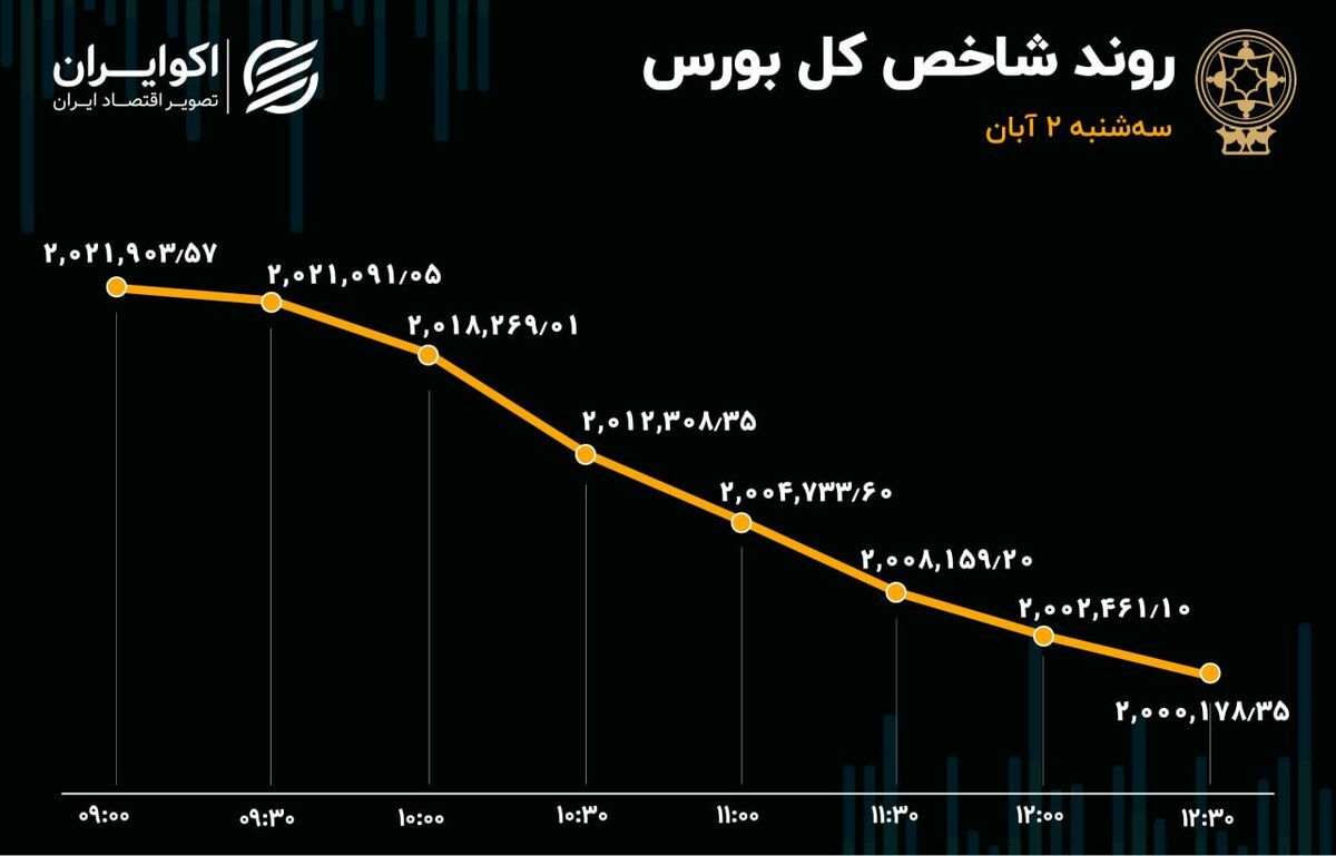در معاملات روز سه‌شنبه دوم آبان ماه 1402، شاخص کل بورس تهران 21 هزار و 727 واحد نسبت به روز کاری گذشته پایین‌تر ایستاد و به سطح 2 میلیون و 176 واحد رسید. این دومین سقوط بزرگ بورس تهران در پاییز 1402 است.