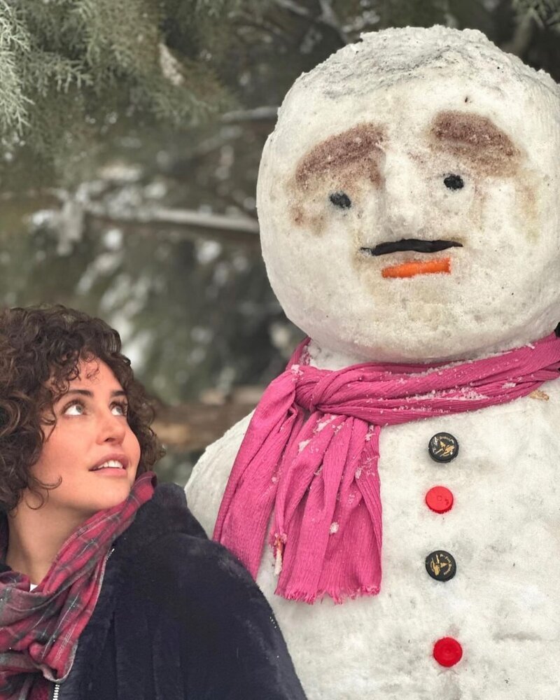 جنجال تیپ زیبای الناز شاکردوست با آدم‌برفی عکس