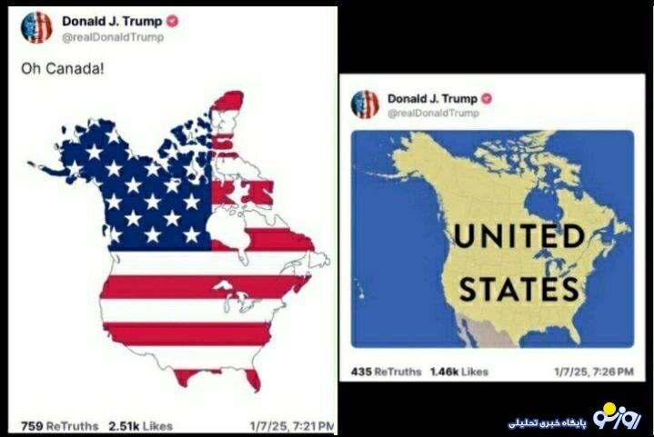 توییت تصویری اکانت رسمی دونالد ترامپ در شبکه اجتماعی که در آن کانادا را بخشی از ایالات متحده آمریکا نشان داد.