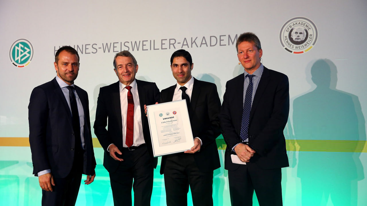 وحید هاشمیان در قابی با دیتر هکینگ سرمربی وقت هانوفر و حال حاضر بوخوم آلمانتلاش گاریدو برای پیادهسازی این سیستم