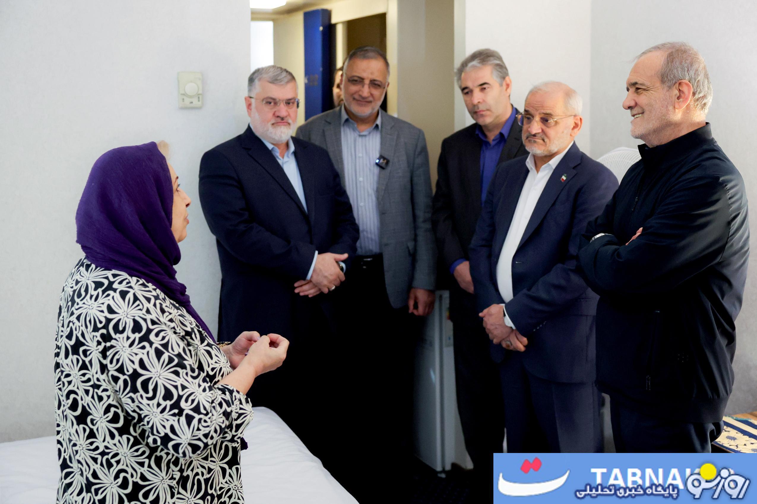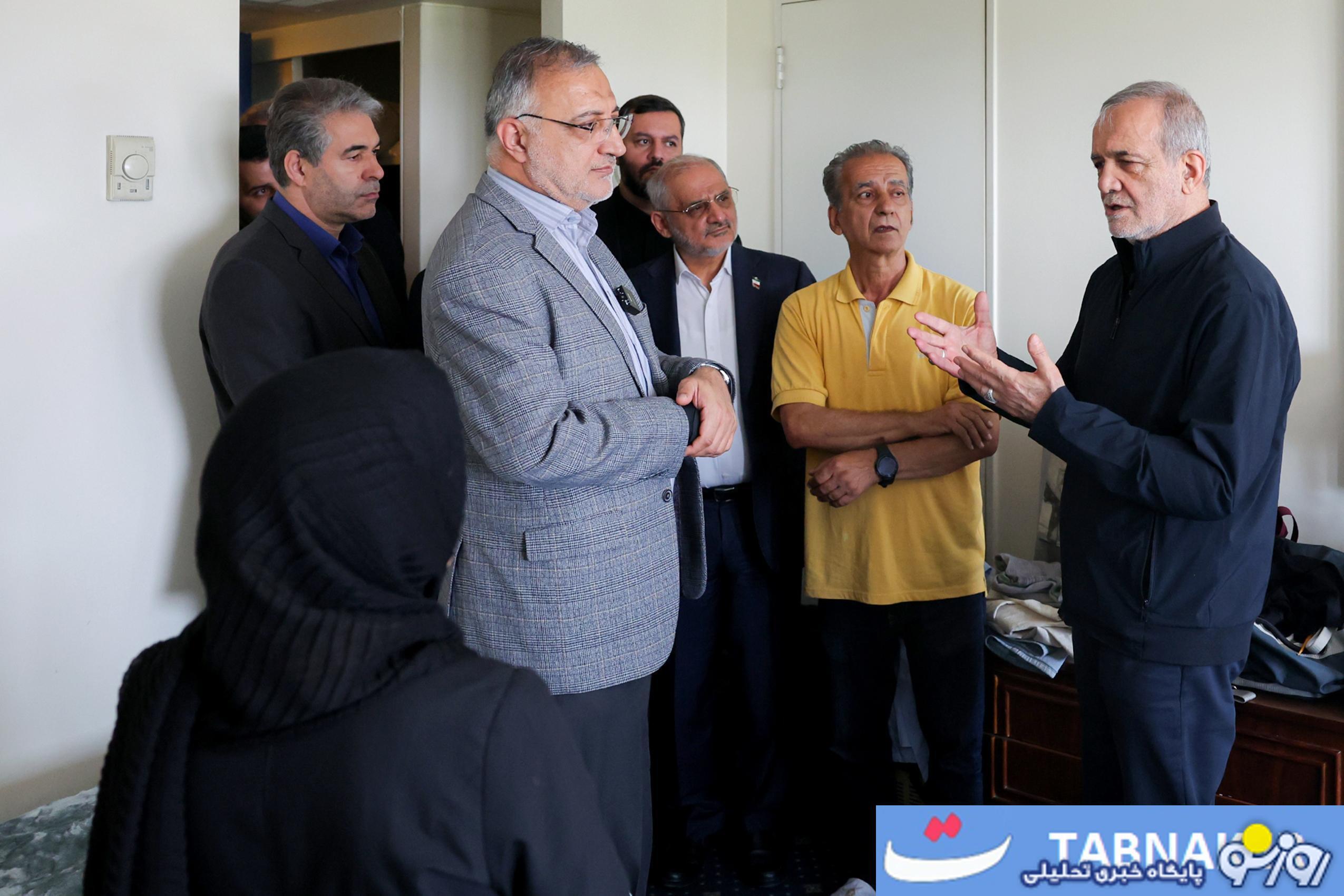 دکتر مسعود پزشکیان رئیس جمهور به همراه دکتر علیرضا زاکانی شهردار تهران ظهر دوشنبه با حضور در یکی از هتل‌های شهر تهران با جمعی از خانواده‌های آسیب دیده از جنگ ۱۲ روزه دیدار و گفت‌و‌گو کرد.
